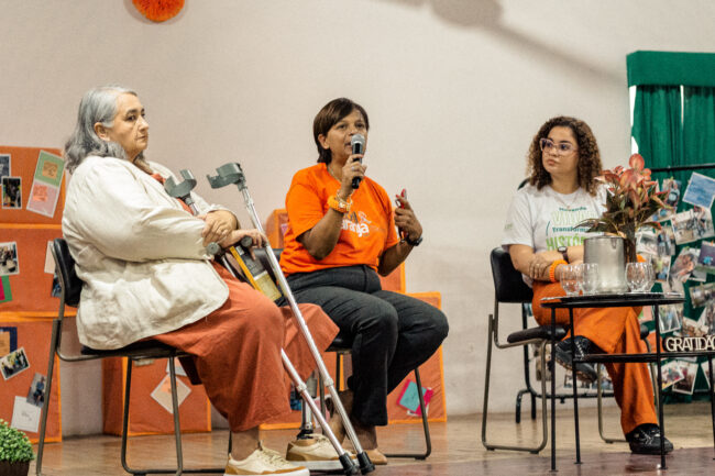 Em mesa temática mediada por Cristiane Vieira, terapeuta ocupacional da instituição, o debate foi conduzido para além da teoria. Ao lado das atletas de canoagem Joelma Teles e Lívia de Assis Aguiar, Cristiane apresentou ao público um panorama vivo do impacto da profissão no cotidiano de pessoas amputadas.